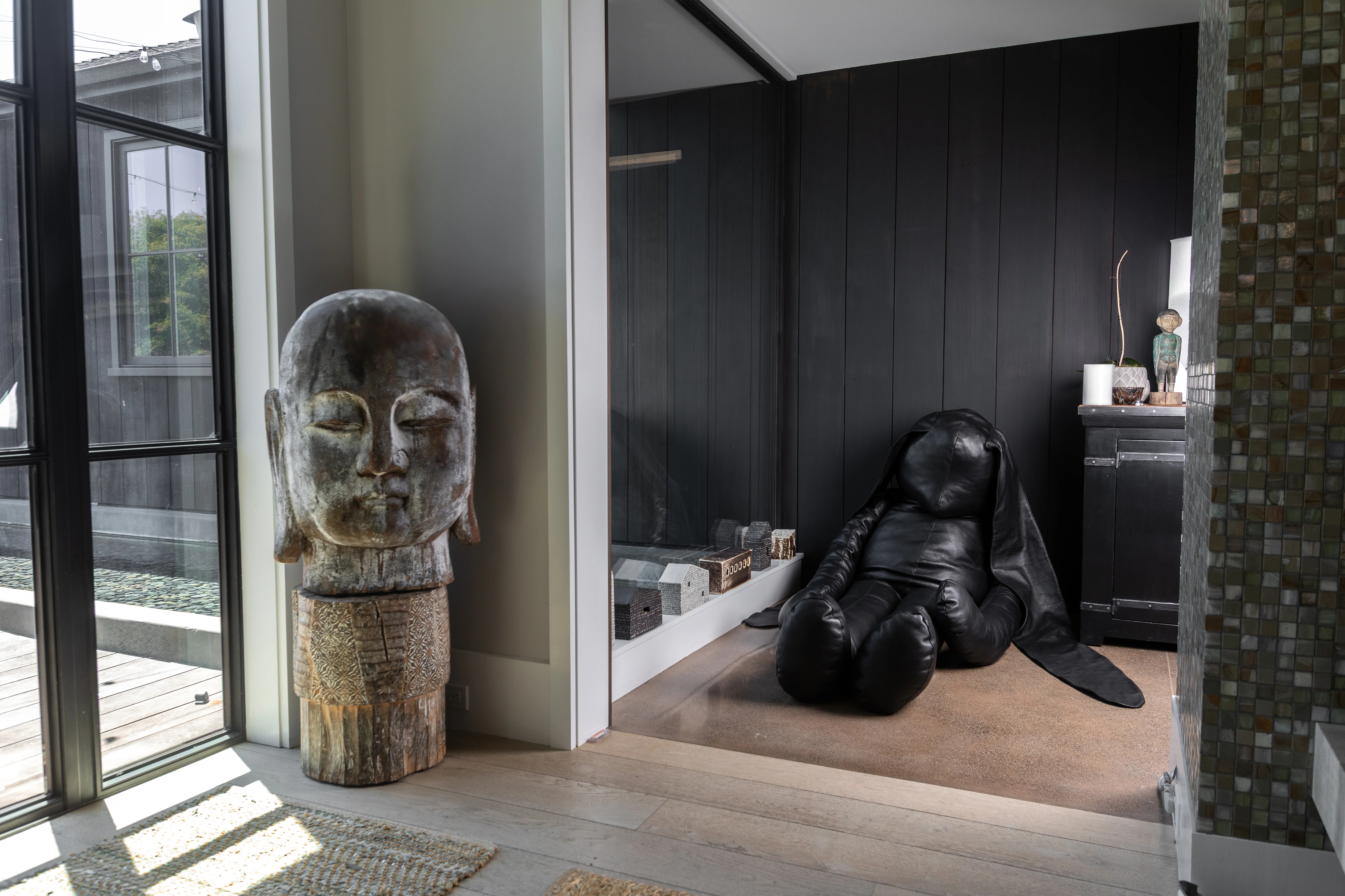 Designed to be posed either seated, reclined, or hung, it adapts fluidly to interior environments - whether anchoring a dark corner of a gallery-like living space or standing as a focal point in a luxury boutique. The piece draws inspiration from Japanese wabi-sabi creating a visual language that is at once tender, meditative, and surreal.